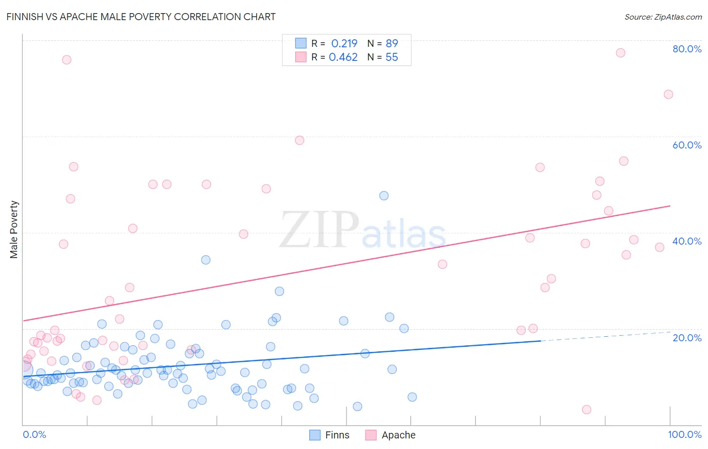 Finnish vs Apache Male Poverty Correlation Chart