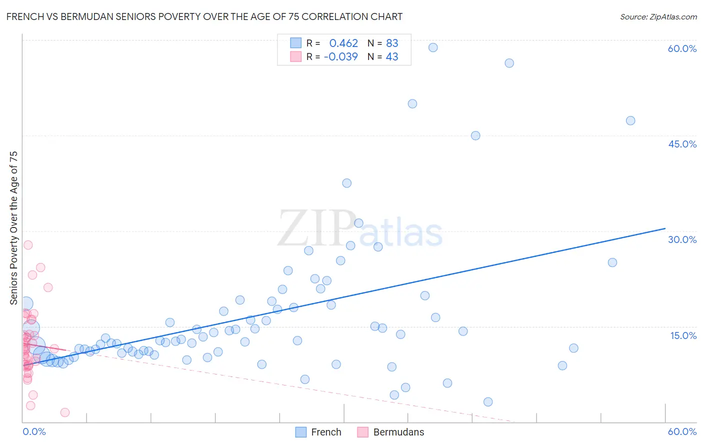 French vs Bermudan Seniors Poverty Over the Age of 75 Correlation Chart