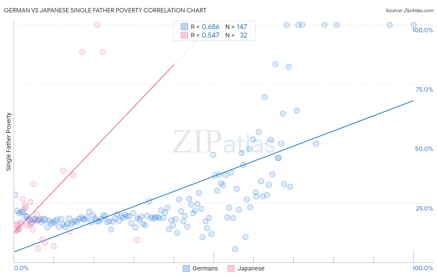 German vs Japanese Single Father Poverty Correlation Chart