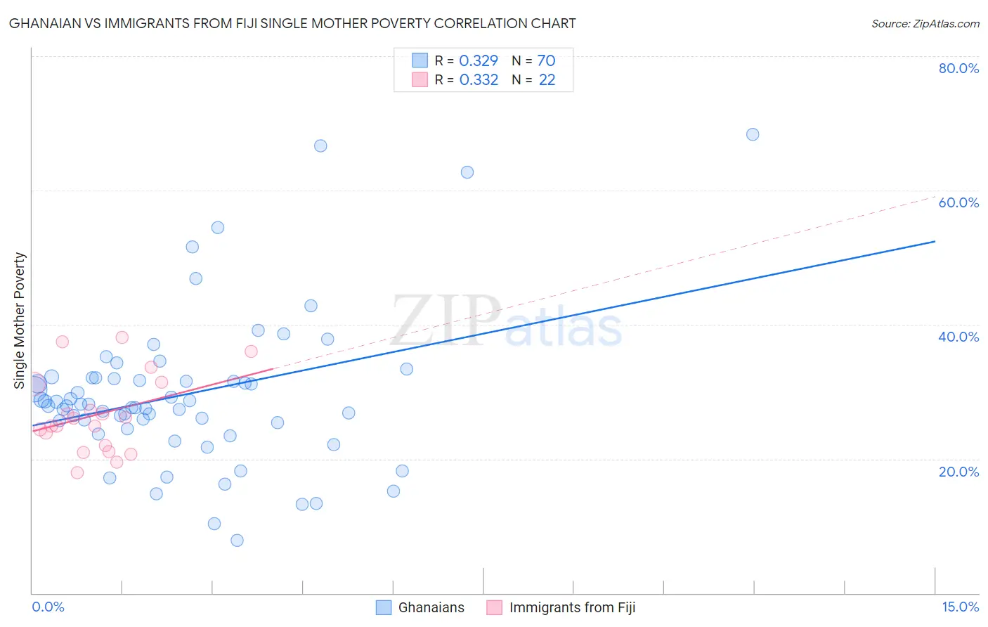 Ghanaian vs Immigrants from Fiji Single Mother Poverty Correlation Chart