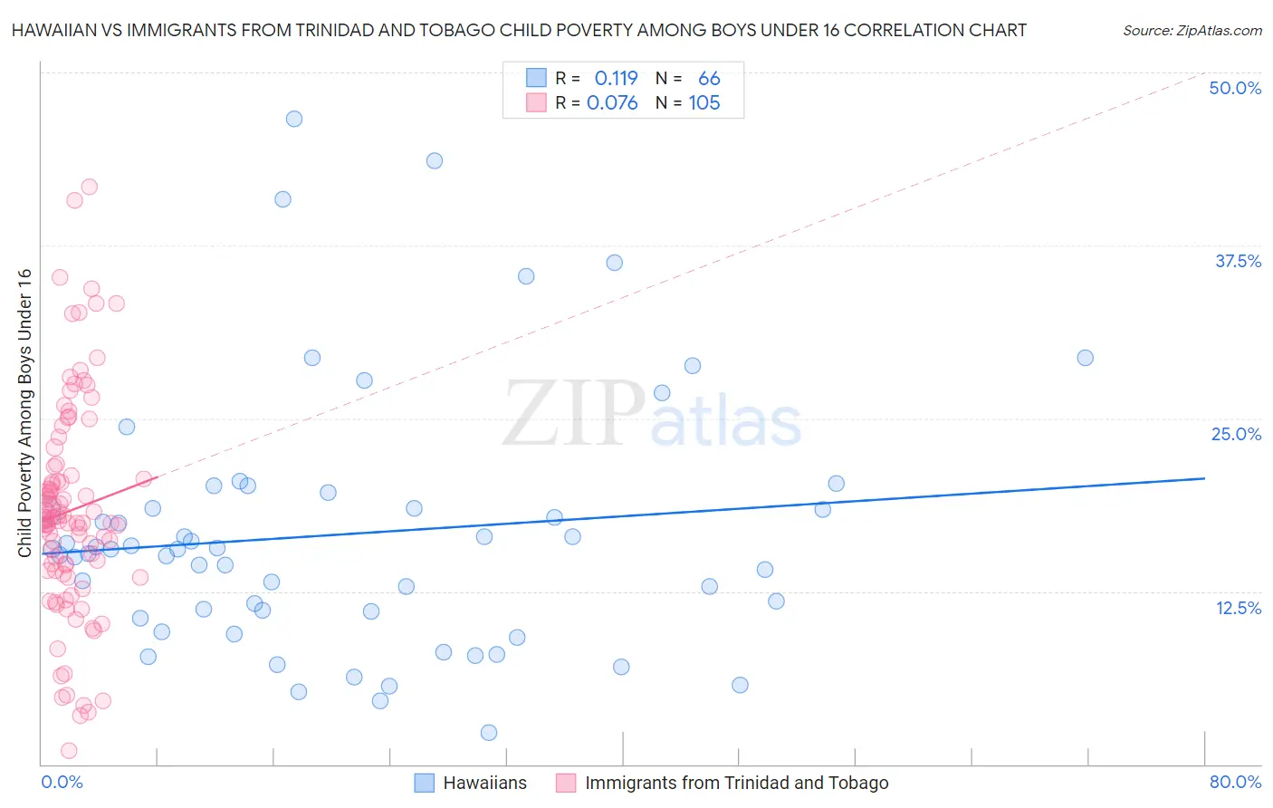 Hawaiian vs Immigrants from Trinidad and Tobago Child Poverty Among Boys Under 16 Correlation Chart