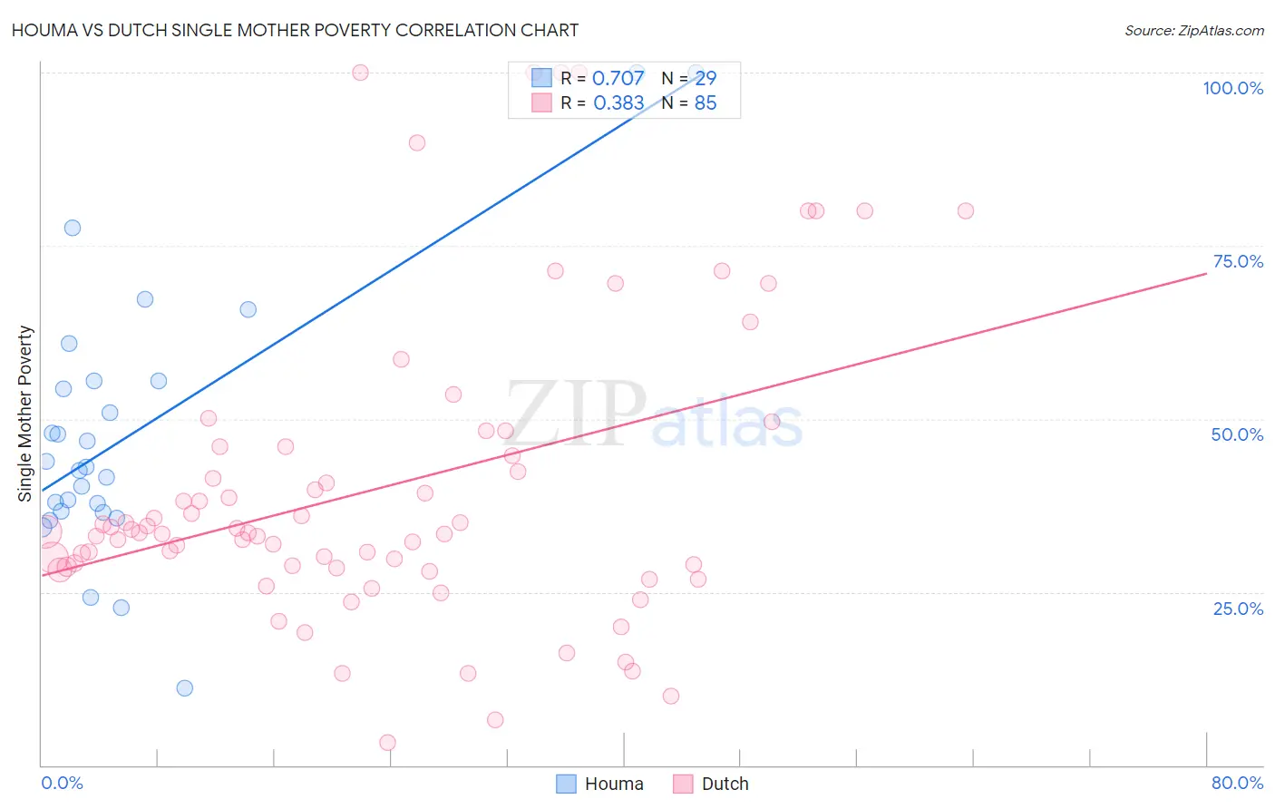 Houma vs Dutch Single Mother Poverty Correlation Chart