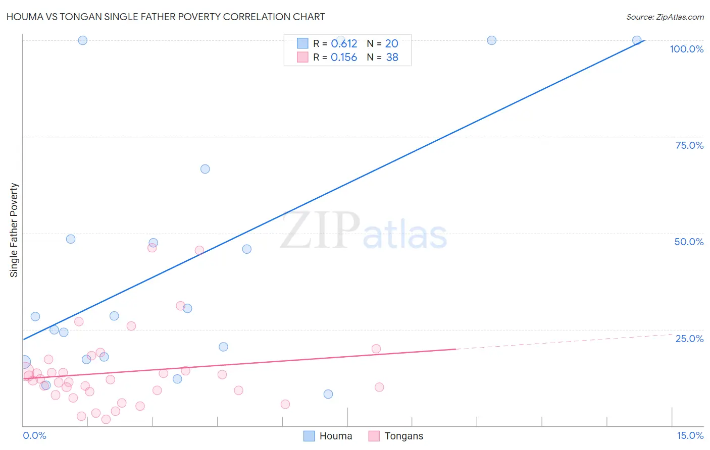 Houma vs Tongan Single Father Poverty Correlation Chart