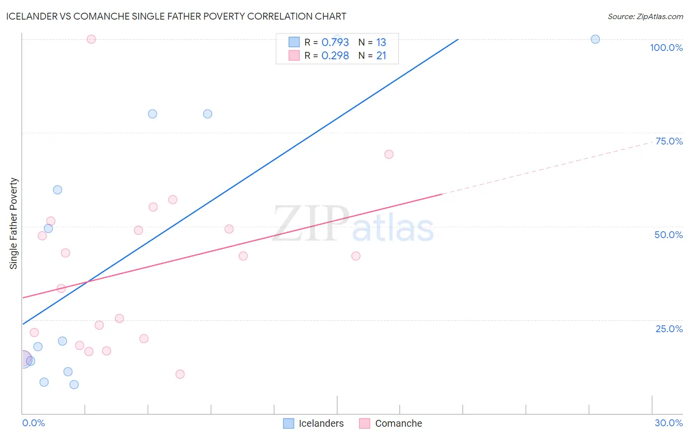 Icelander vs Comanche Single Father Poverty Correlation Chart