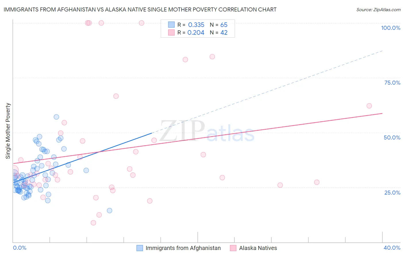 Immigrants from Afghanistan vs Alaska Native Single Mother Poverty Correlation Chart