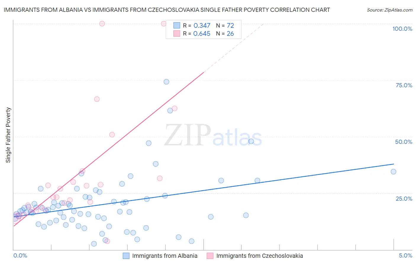 Immigrants from Albania vs Immigrants from Czechoslovakia Single Father Poverty Correlation Chart