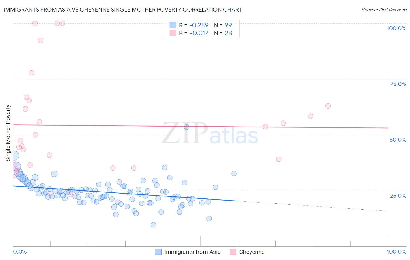 Immigrants from Asia vs Cheyenne Single Mother Poverty