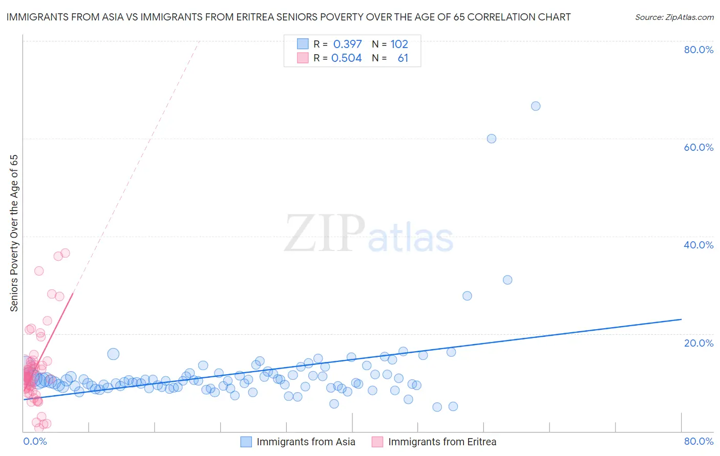 Immigrants from Asia vs Immigrants from Eritrea Seniors Poverty Over the Age of 65 Correlation Chart
