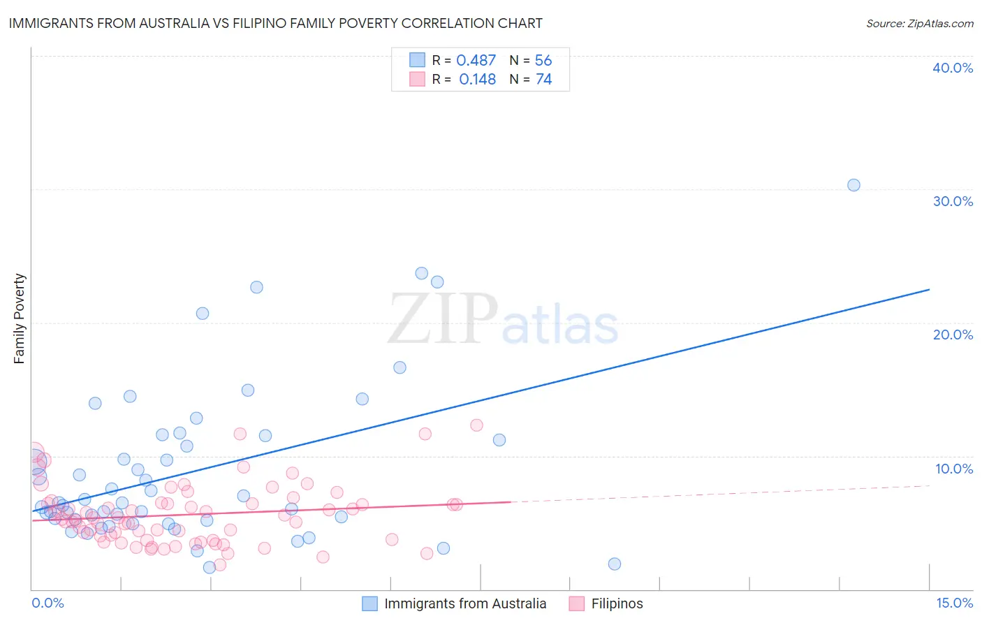 Immigrants from Australia vs Filipino Family Poverty Correlation Chart