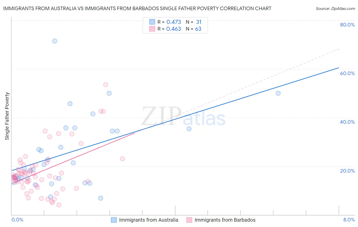 Immigrants from Australia vs Immigrants from Barbados Single Father Poverty Correlation Chart