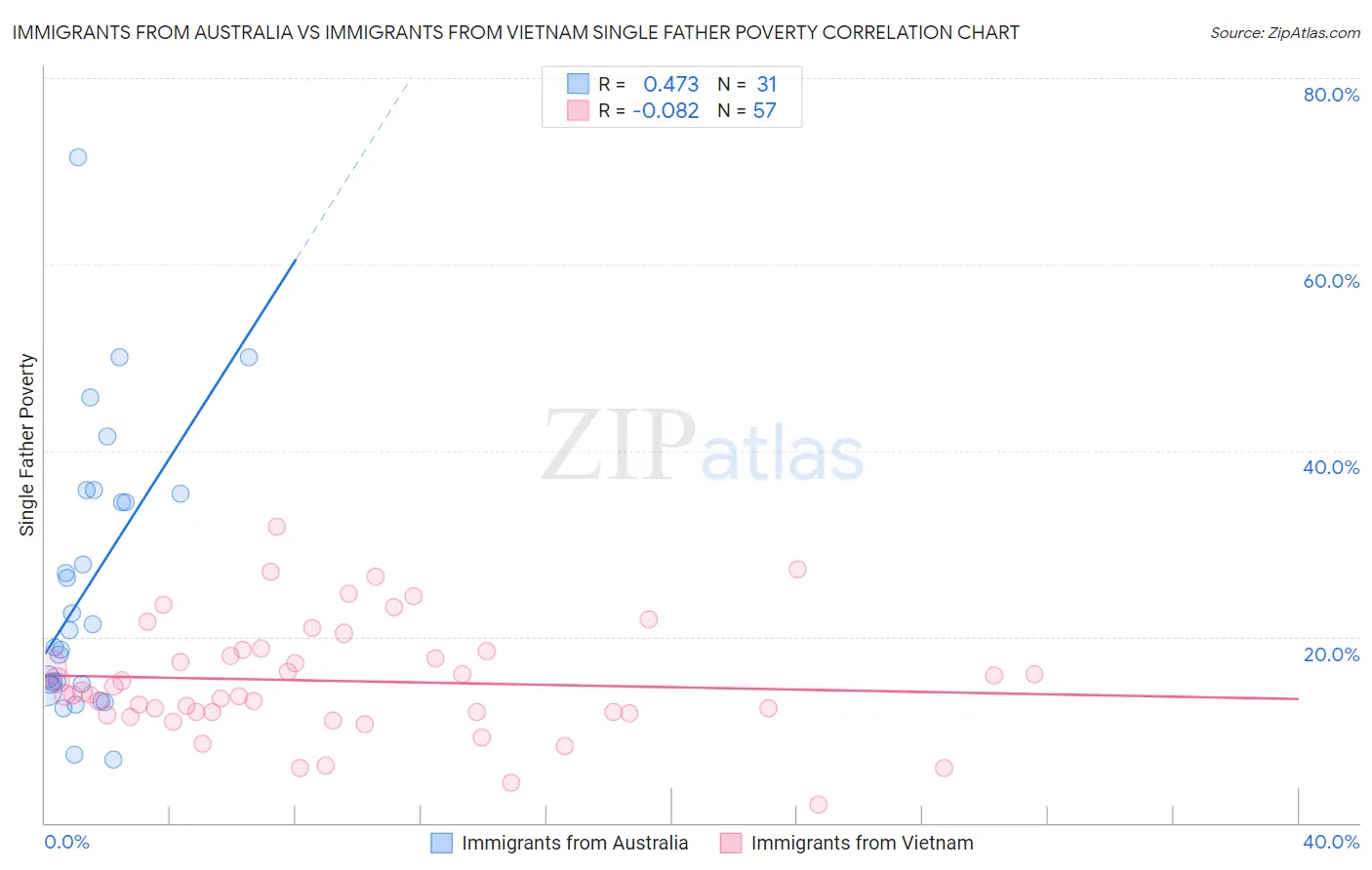 Immigrants from Australia vs Immigrants from Vietnam Single Father Poverty Correlation Chart