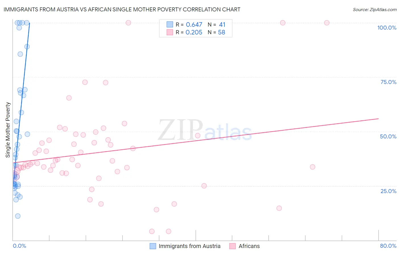 Immigrants from Austria vs African Single Mother Poverty Correlation Chart