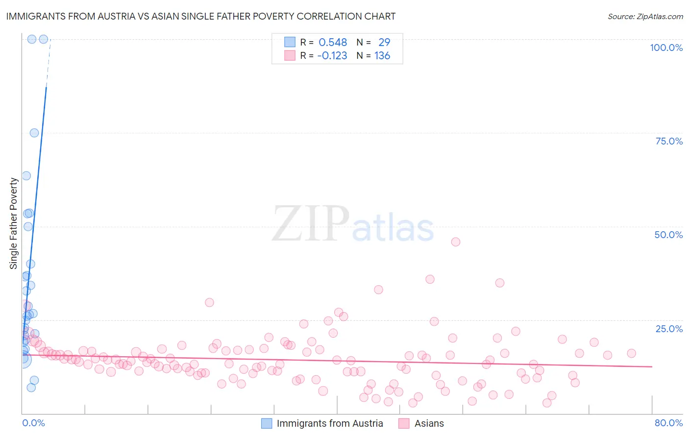 Immigrants from Austria vs Asian Single Father Poverty Correlation Chart
