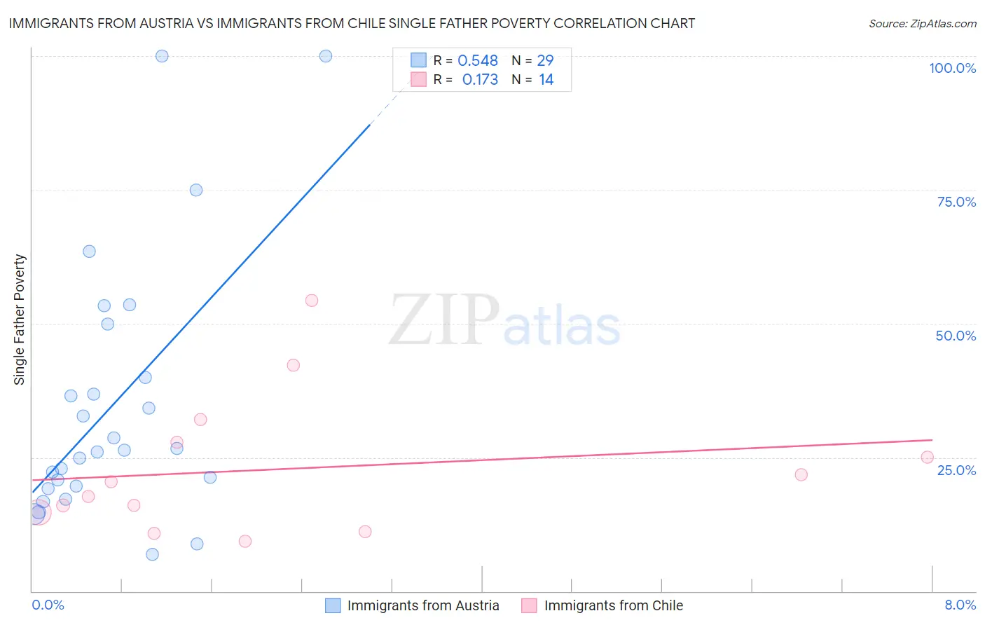 Immigrants from Austria vs Immigrants from Chile Single Father Poverty Correlation Chart