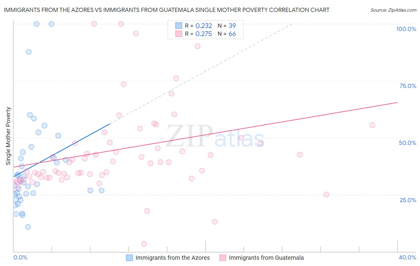 Immigrants from the Azores vs Immigrants from Guatemala Single Mother Poverty Correlation Chart