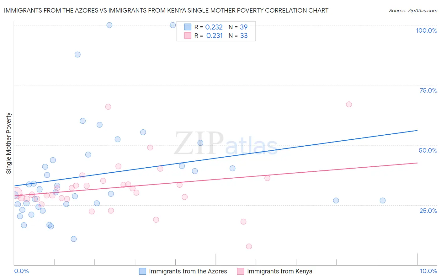 Immigrants from the Azores vs Immigrants from Kenya Single Mother Poverty Correlation Chart