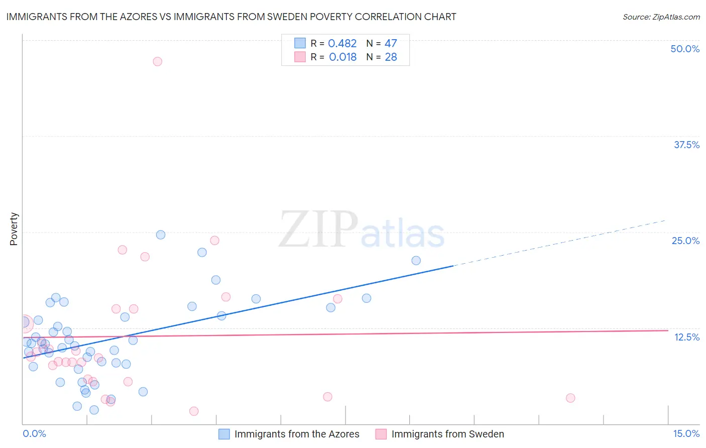 Immigrants from the Azores vs Immigrants from Sweden Poverty Correlation Chart
