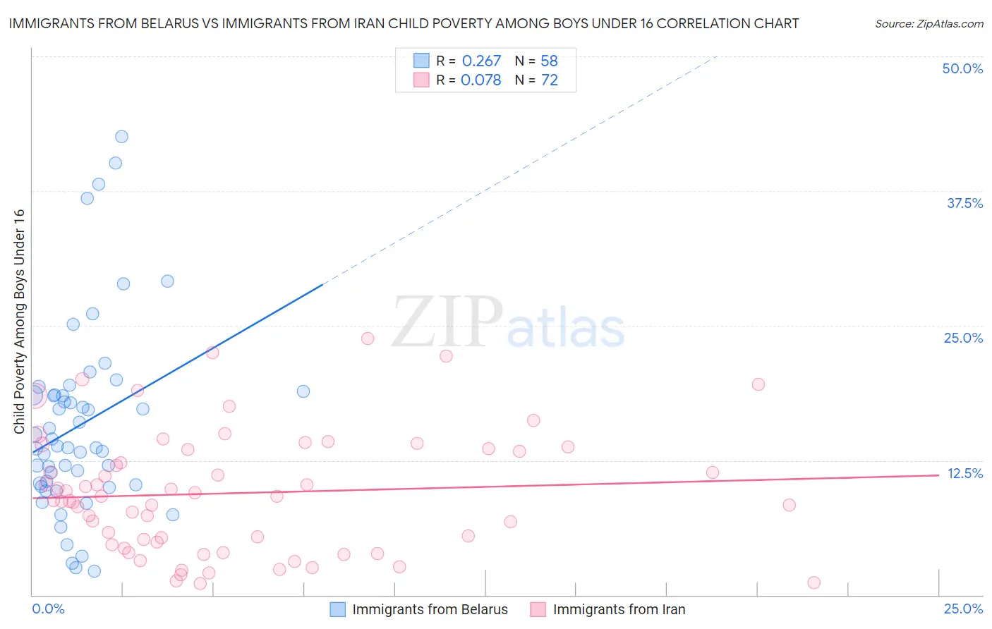 Immigrants from Belarus vs Immigrants from Iran Child Poverty Among Boys Under 16 Correlation Chart