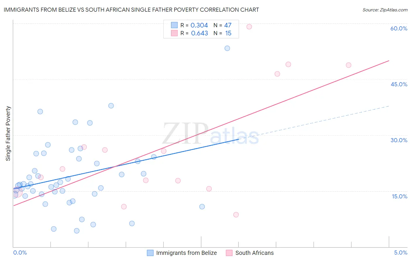 Immigrants from Belize vs South African Single Father Poverty Correlation Chart