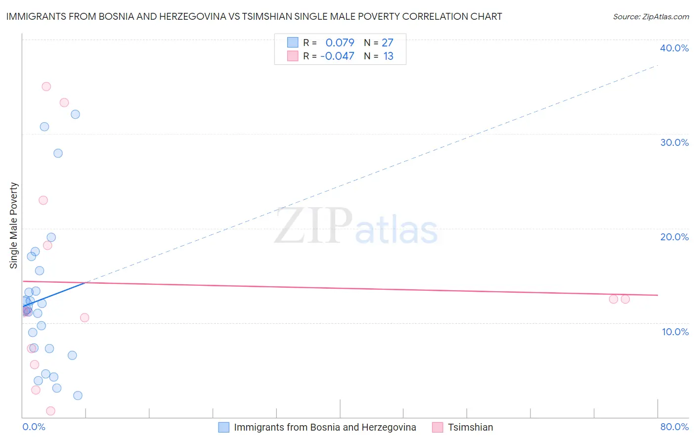 Immigrants from Bosnia and Herzegovina vs Tsimshian Single Male Poverty