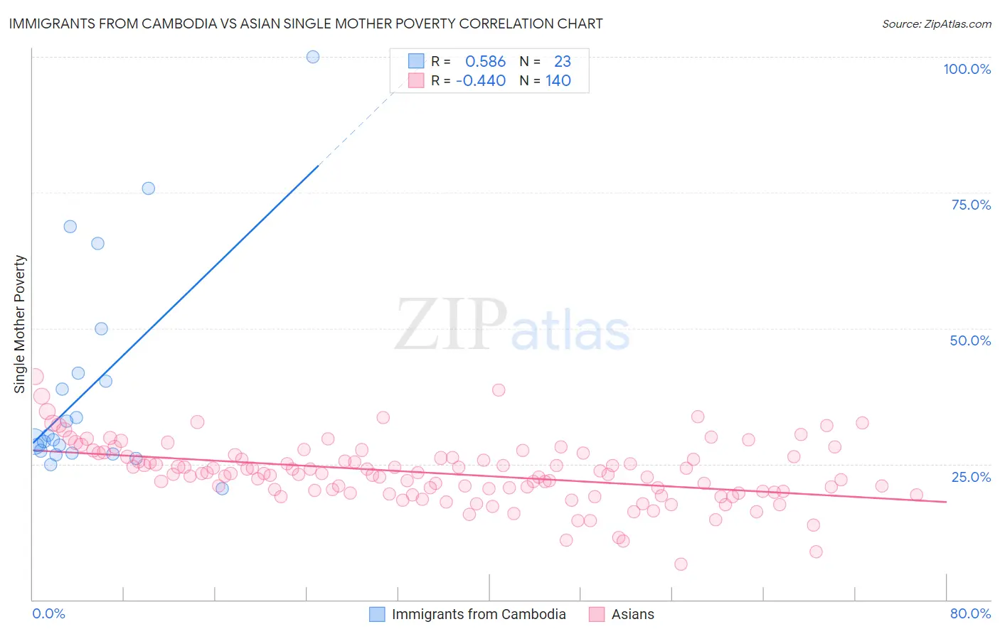 Immigrants from Cambodia vs Asian Single Mother Poverty Correlation Chart