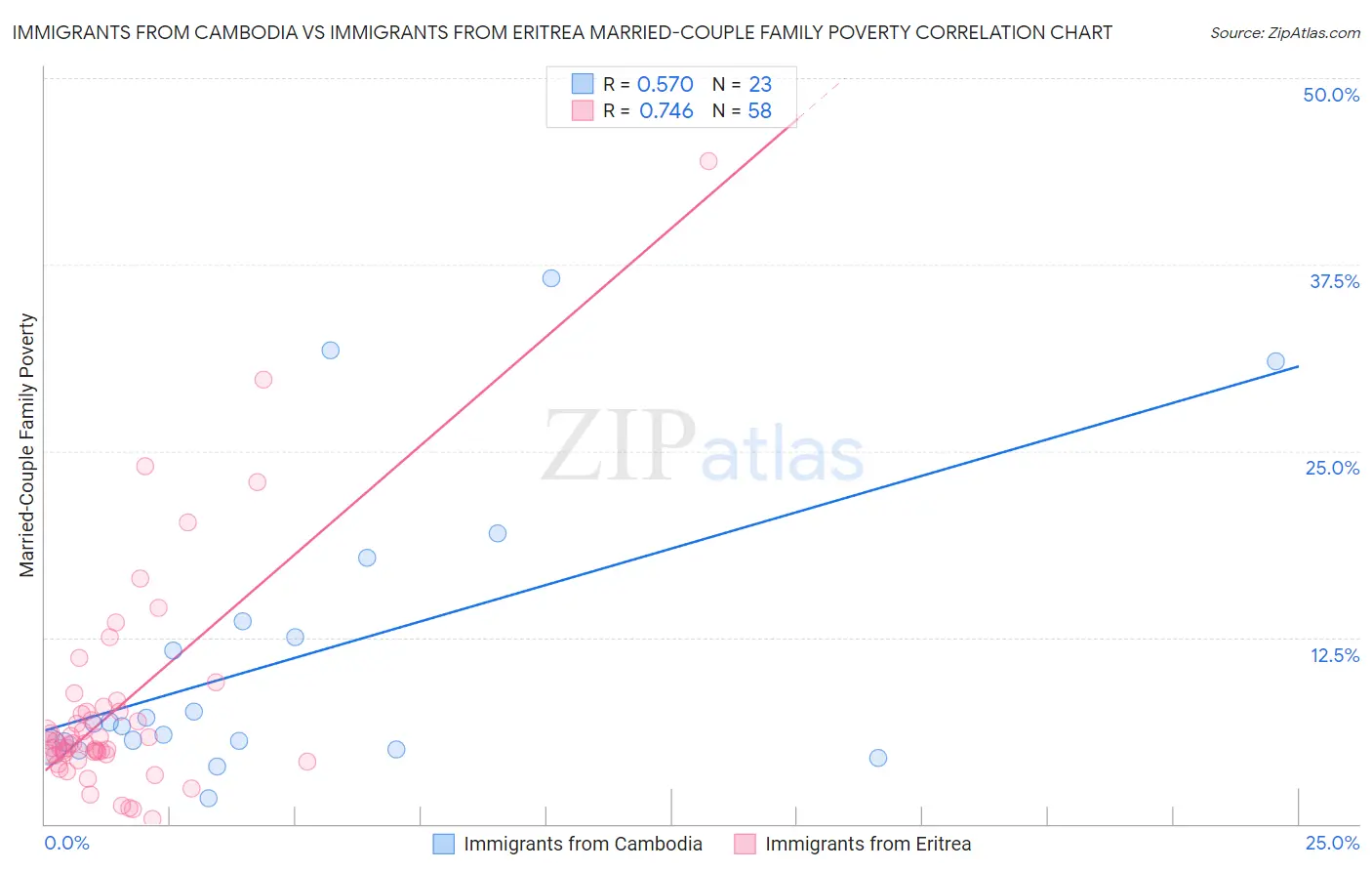 Immigrants from Cambodia vs Immigrants from Eritrea Married-Couple Family Poverty Correlation Chart