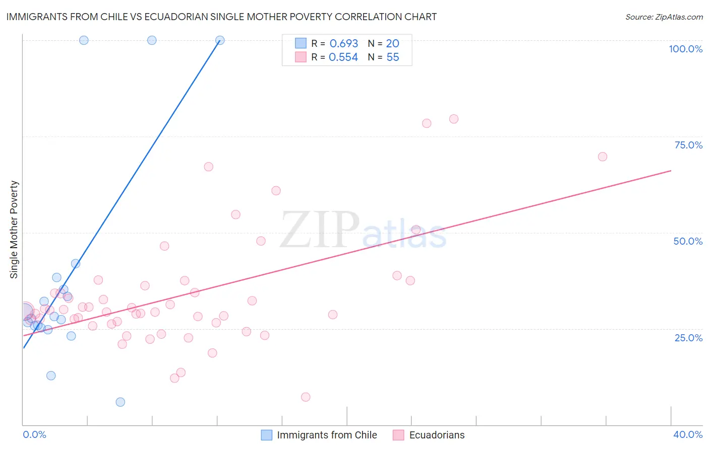 Immigrants from Chile vs Ecuadorian Single Mother Poverty Correlation Chart