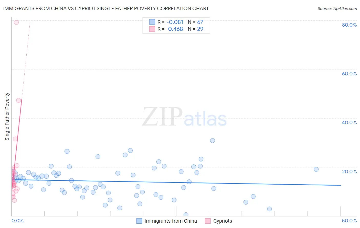 Immigrants from China vs Cypriot Single Father Poverty Correlation Chart