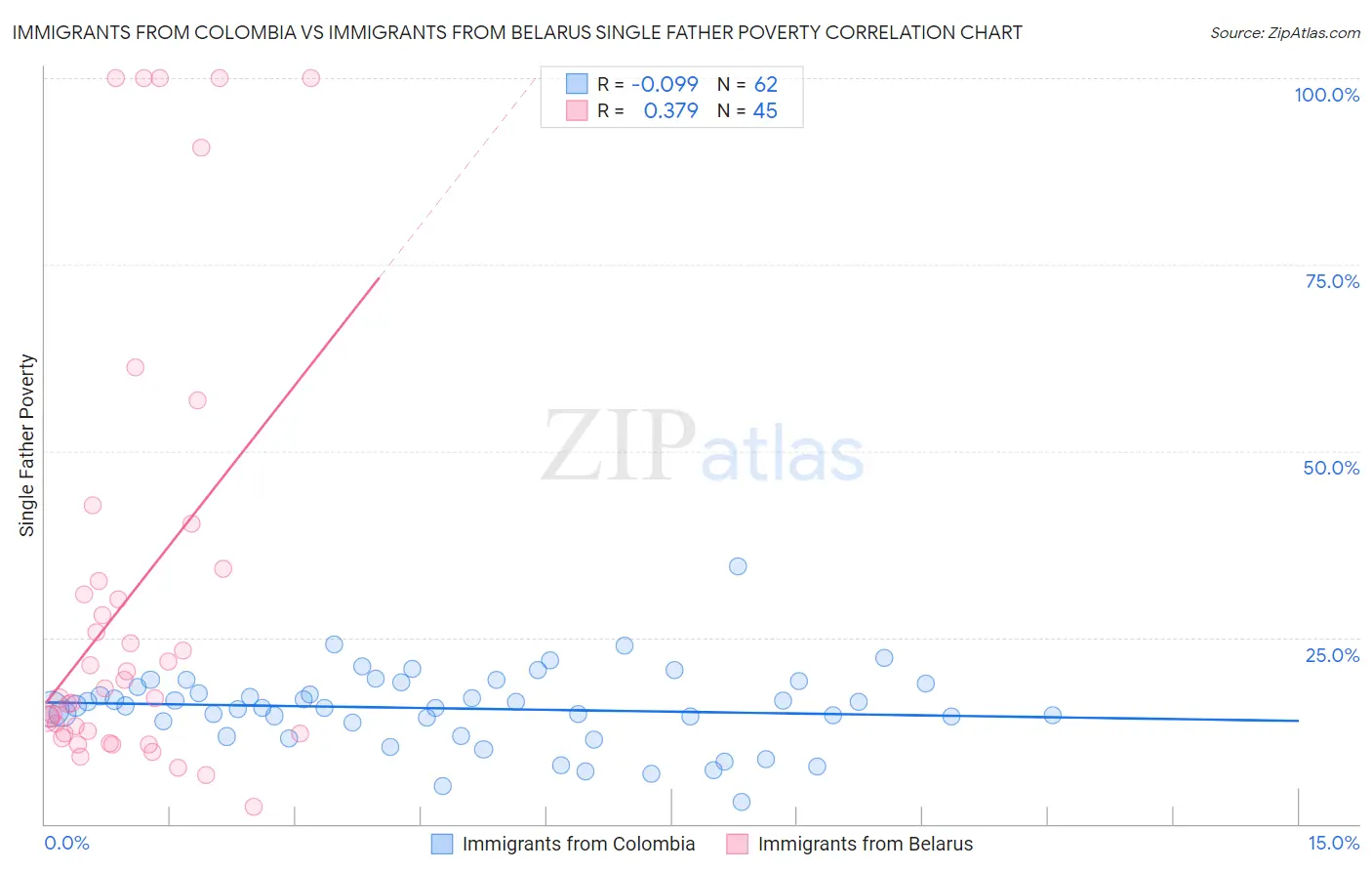 Immigrants from Colombia vs Immigrants from Belarus Single Father Poverty Correlation Chart