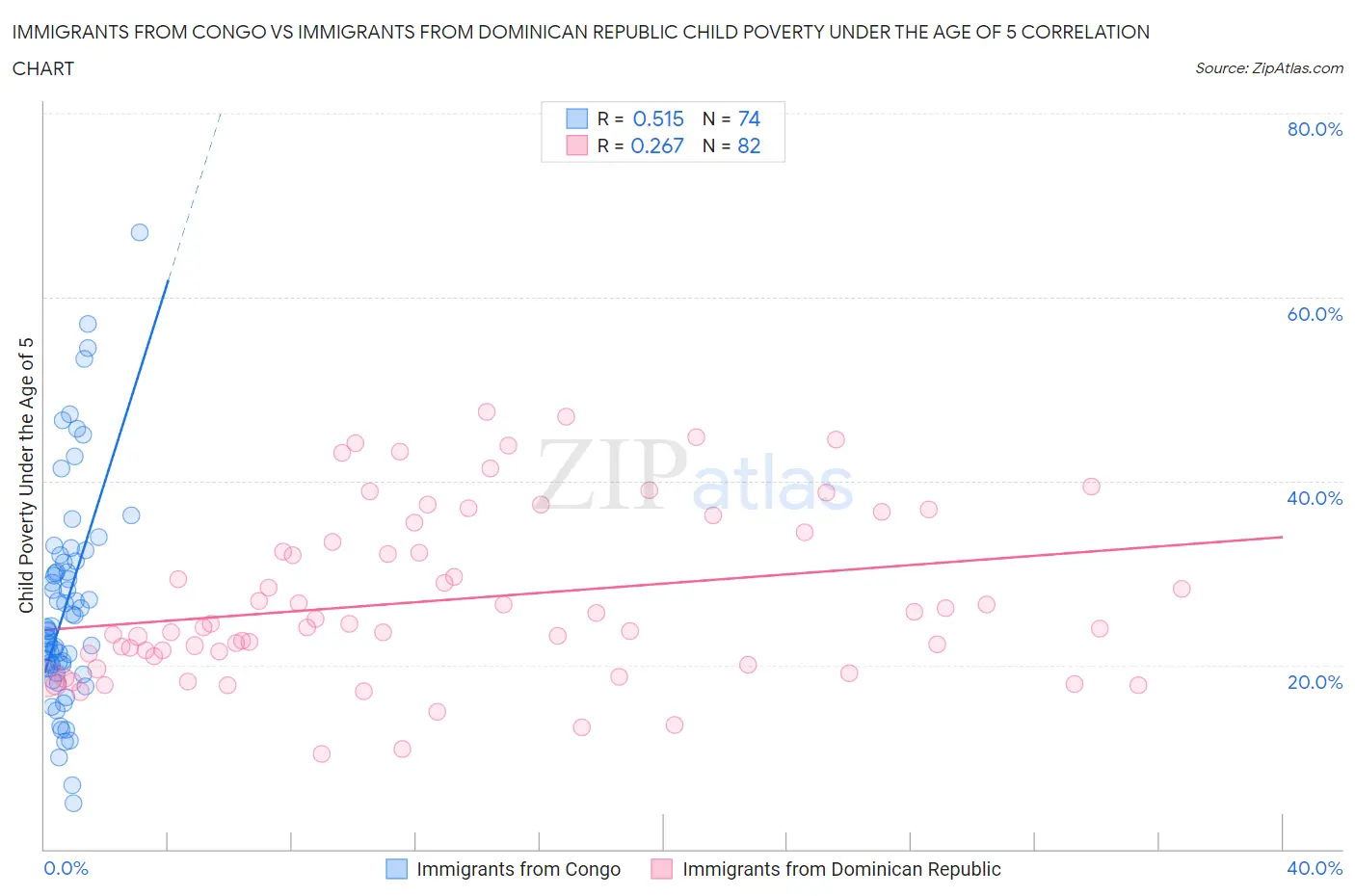 Immigrants from Congo vs Immigrants from Dominican Republic Child Poverty Under the Age of 5 Correlation Chart