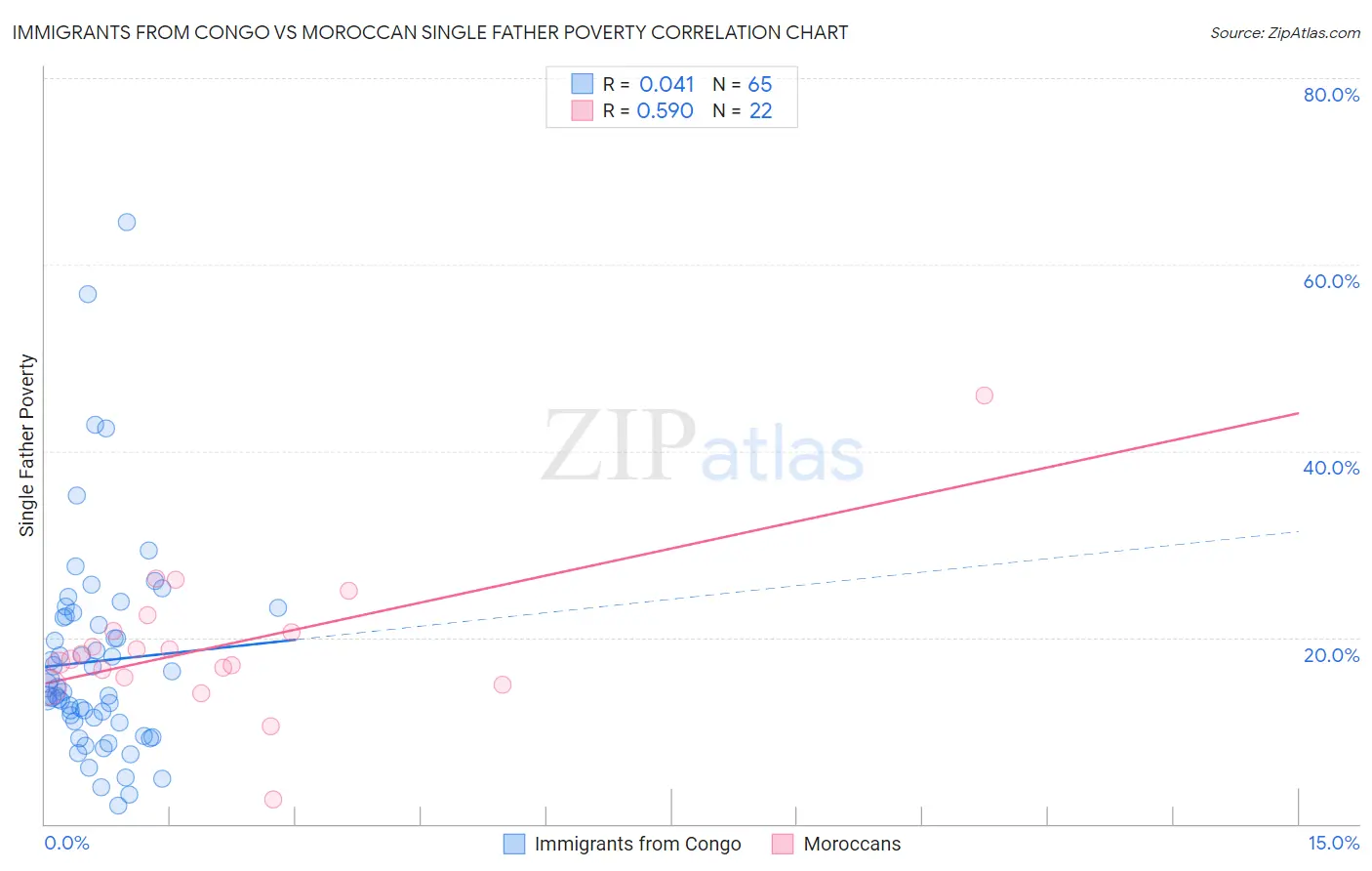 Immigrants from Congo vs Moroccan Single Father Poverty Correlation Chart