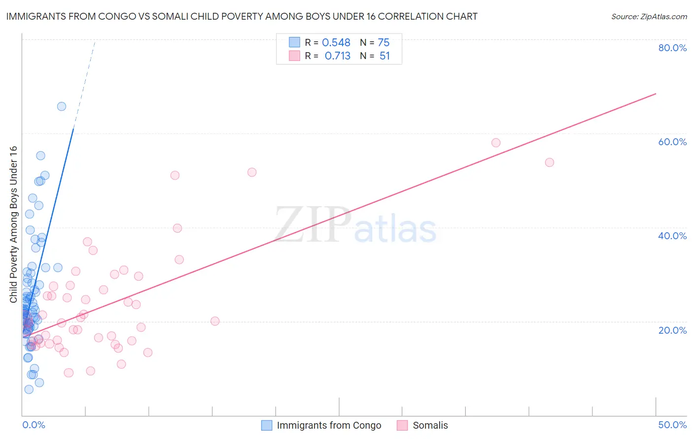 Immigrants from Congo vs Somali Child Poverty Among Boys Under 16 Correlation Chart