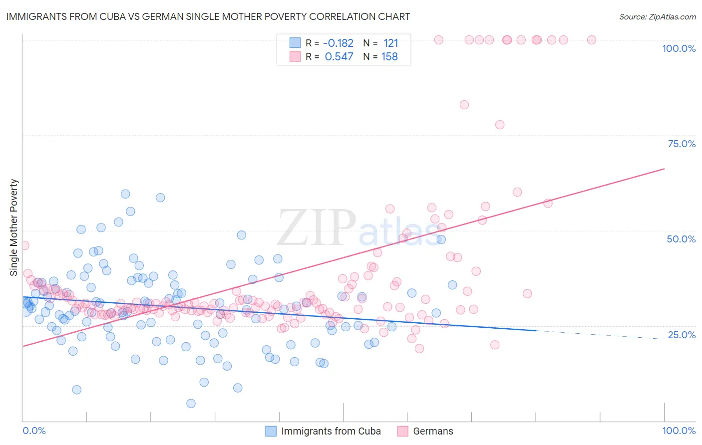 Immigrants from Cuba vs German Single Mother Poverty Correlation Chart