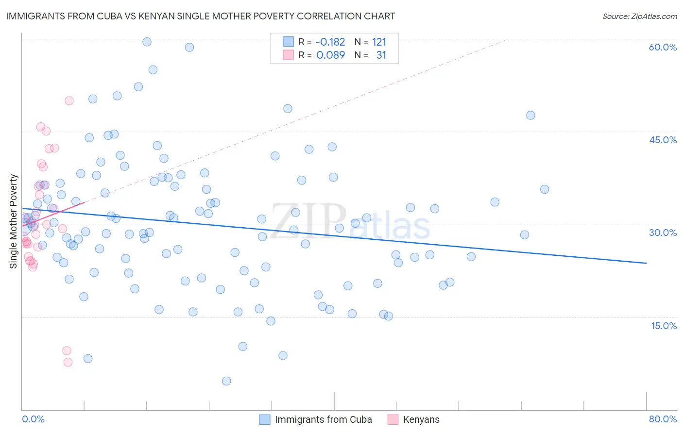 Immigrants from Cuba vs Kenyan Single Mother Poverty Correlation Chart
