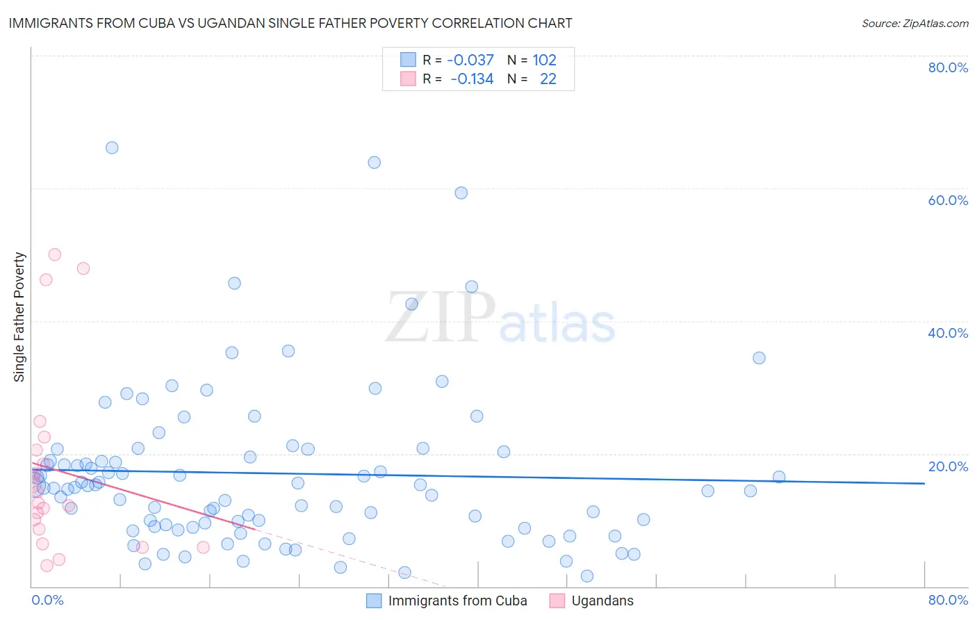 Immigrants from Cuba vs Ugandan Single Father Poverty Correlation Chart