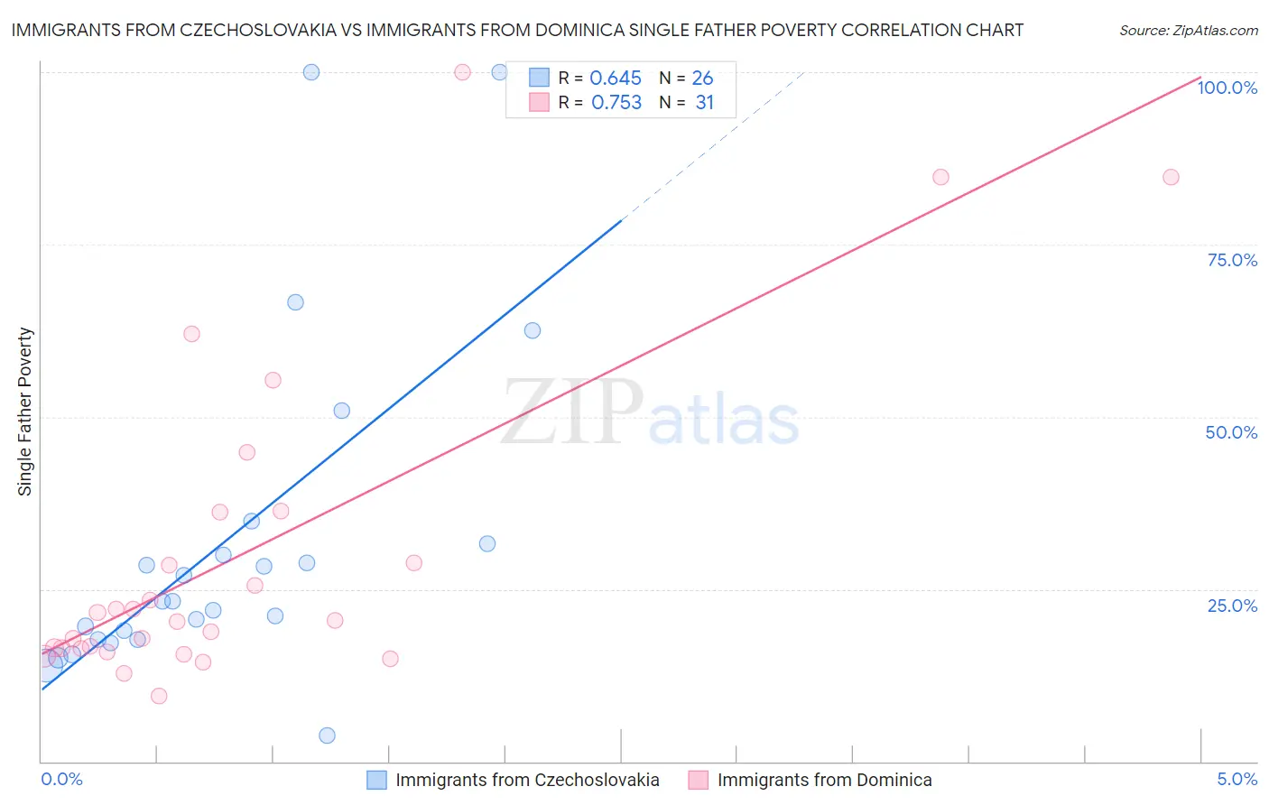 Immigrants from Czechoslovakia vs Immigrants from Dominica Single Father Poverty Correlation Chart