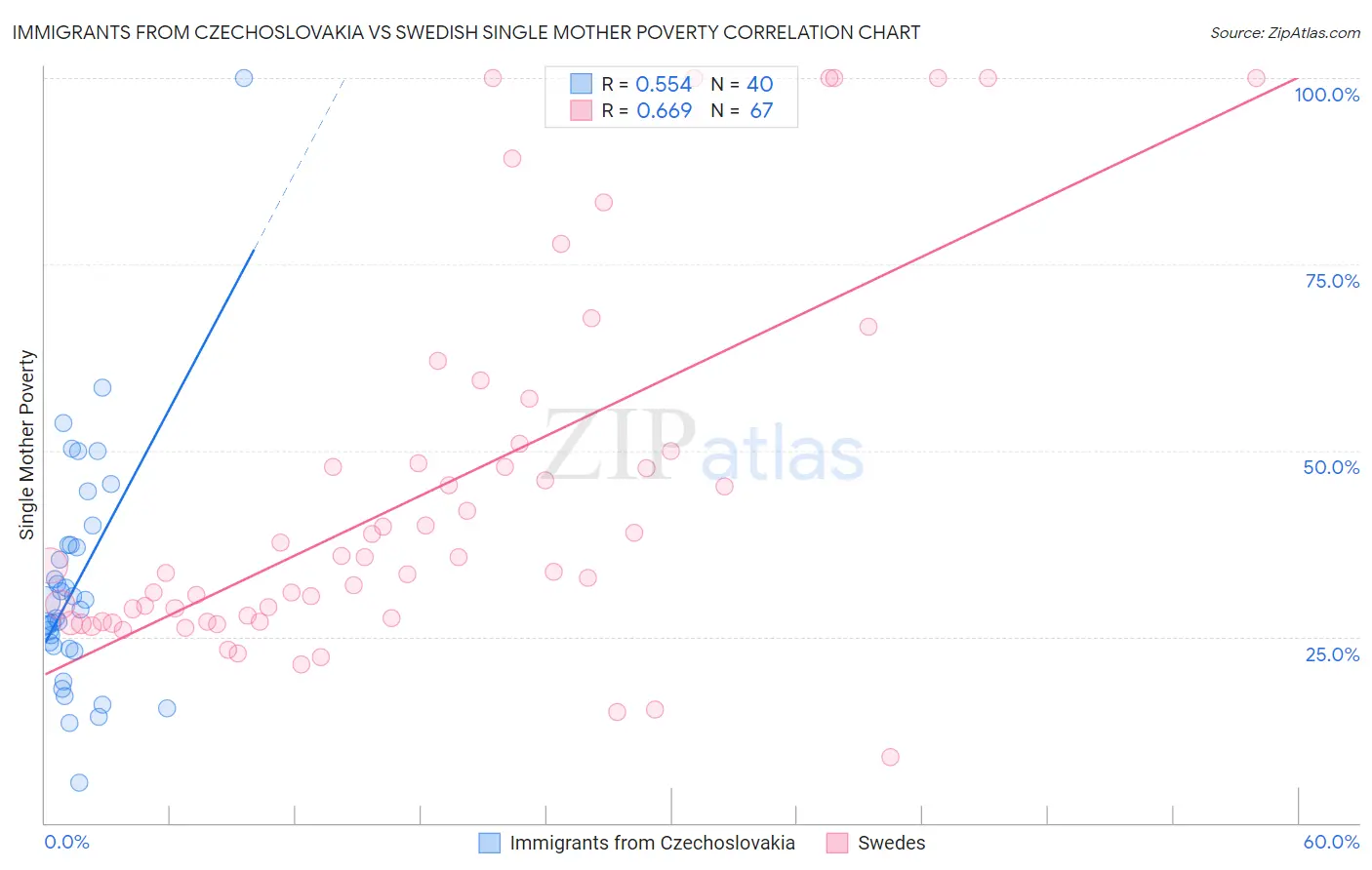 Immigrants from Czechoslovakia vs Swedish Single Mother Poverty Correlation Chart