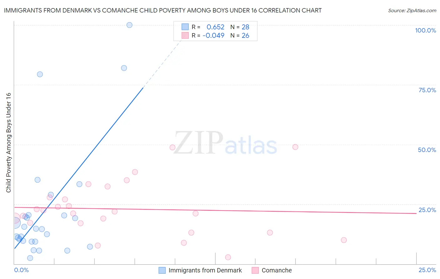 Immigrants from Denmark vs Comanche Child Poverty Among Boys Under 16 Correlation Chart