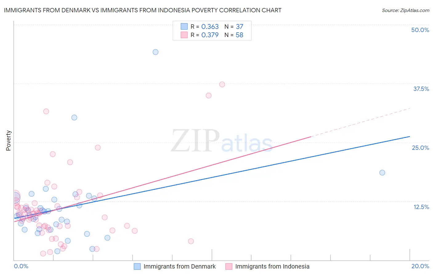 Immigrants from Denmark vs Immigrants from Indonesia Poverty Correlation Chart