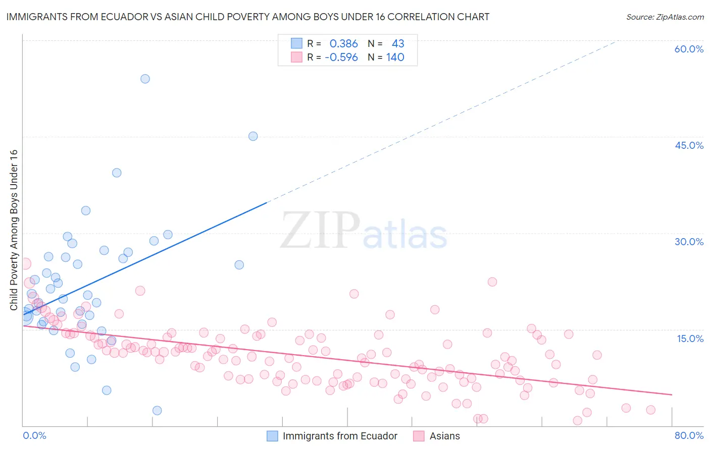 Immigrants from Ecuador vs Asian Child Poverty Among Boys Under 16 Correlation Chart
