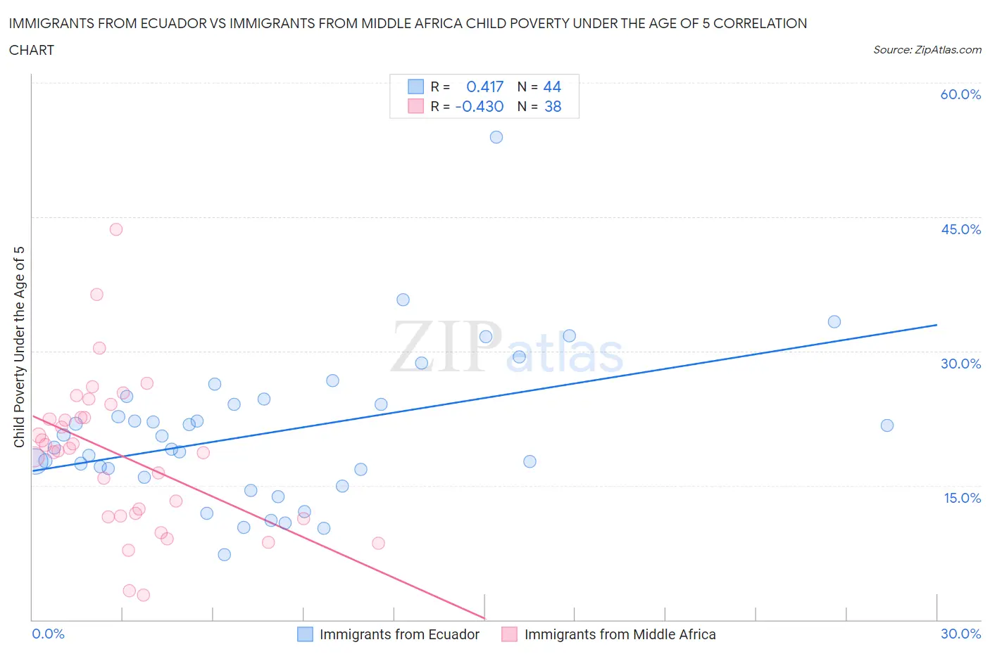 Immigrants from Ecuador vs Immigrants from Middle Africa Child Poverty Under the Age of 5 Correlation Chart