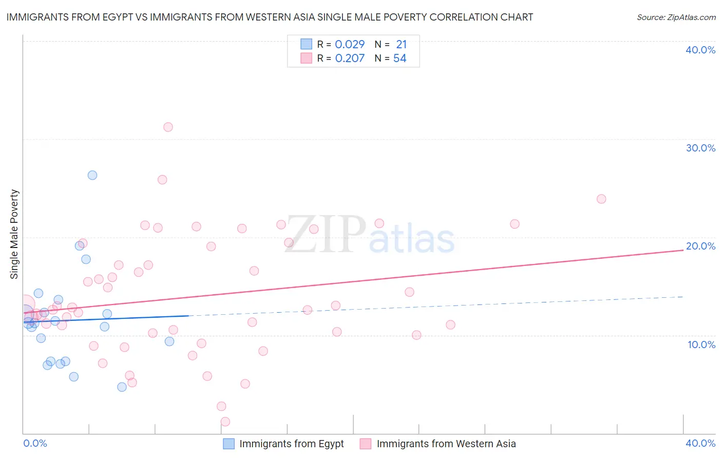 Immigrants from Egypt vs Immigrants from Western Asia Single Male Poverty Correlation Chart
