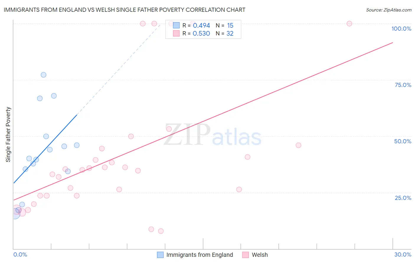 Immigrants from England vs Welsh Single Father Poverty Correlation Chart