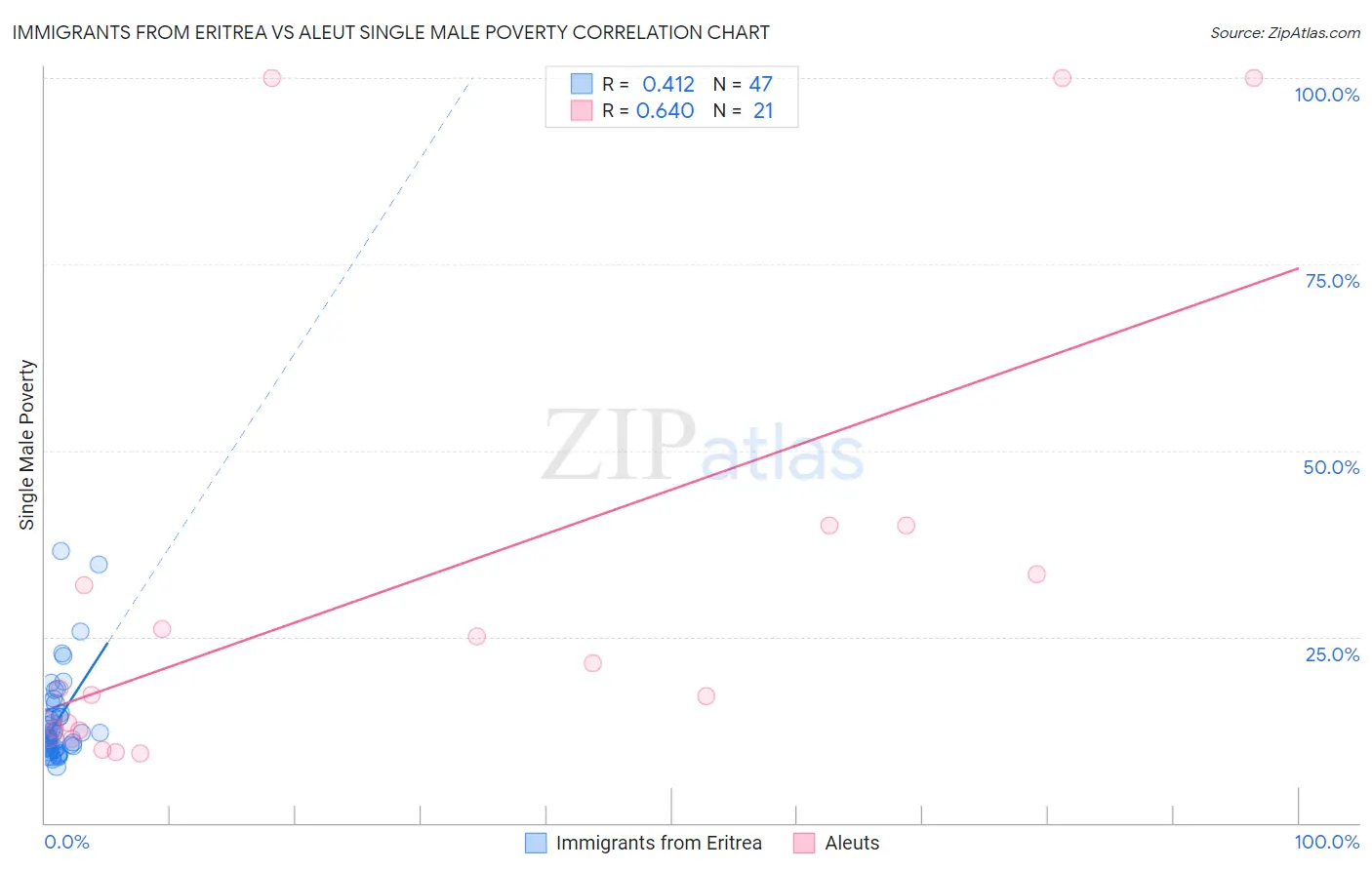 Immigrants from Eritrea vs Aleut Single Male Poverty Correlation Chart