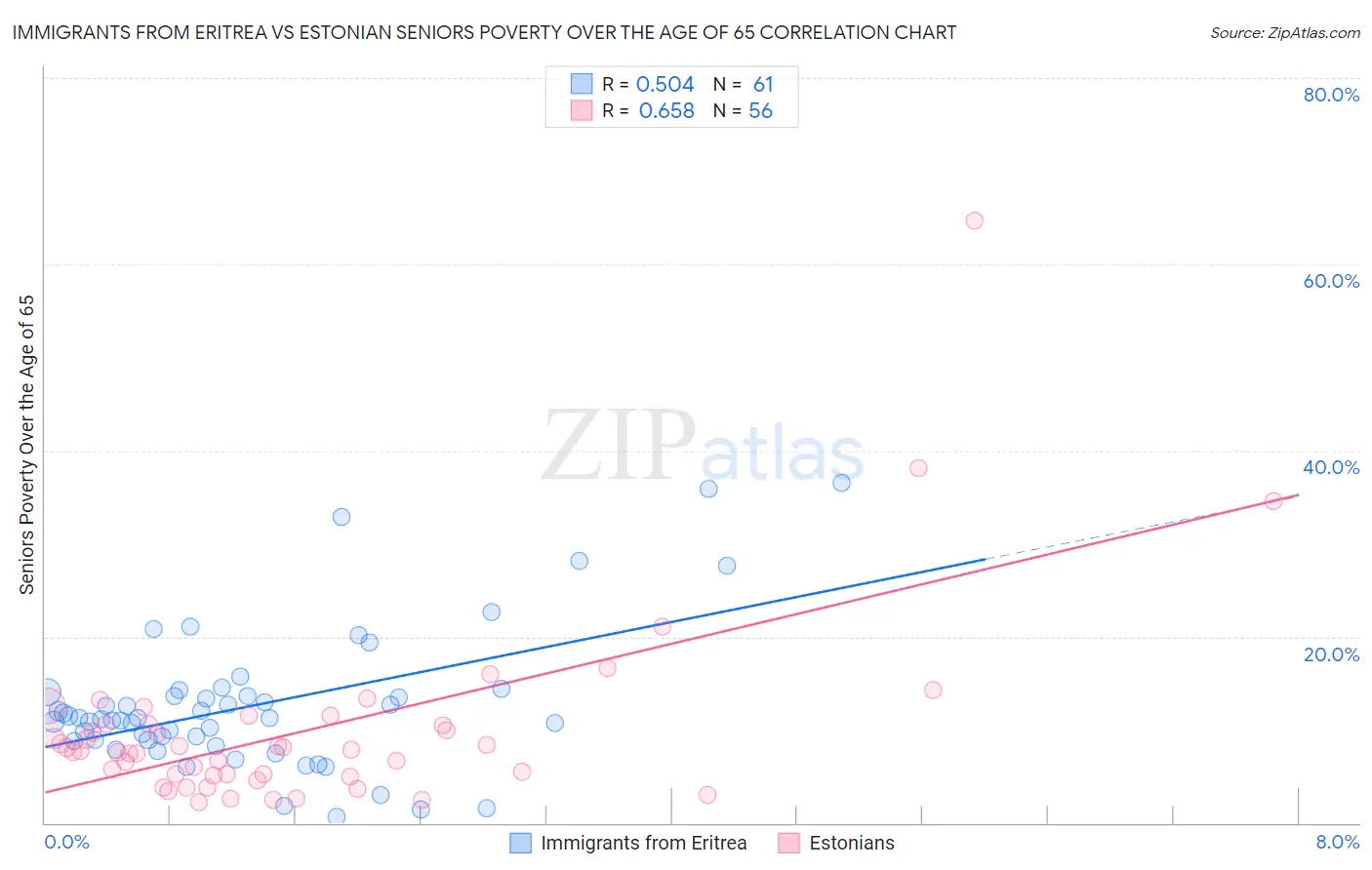 Immigrants from Eritrea vs Estonian Seniors Poverty Over the Age of 65 Correlation Chart