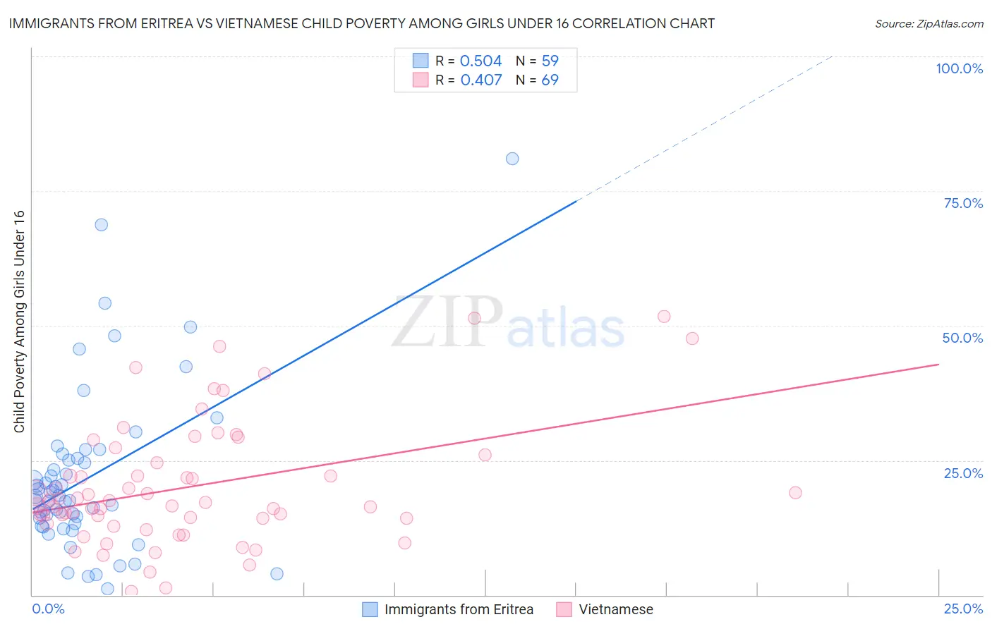 Immigrants from Eritrea vs Vietnamese Child Poverty Among Girls Under 16 Correlation Chart