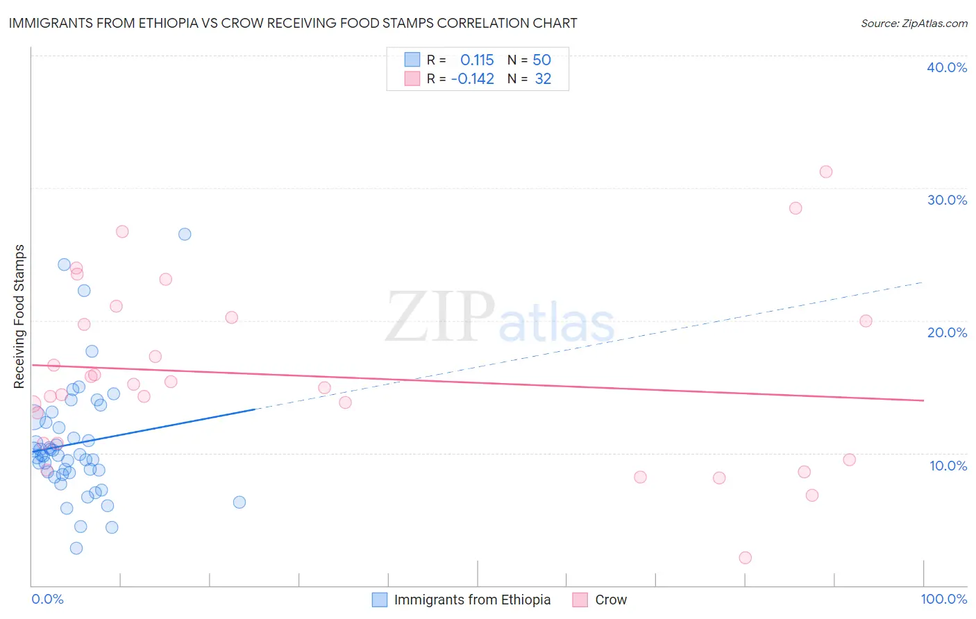 Immigrants from Ethiopia vs Crow Receiving Food Stamps Correlation Chart