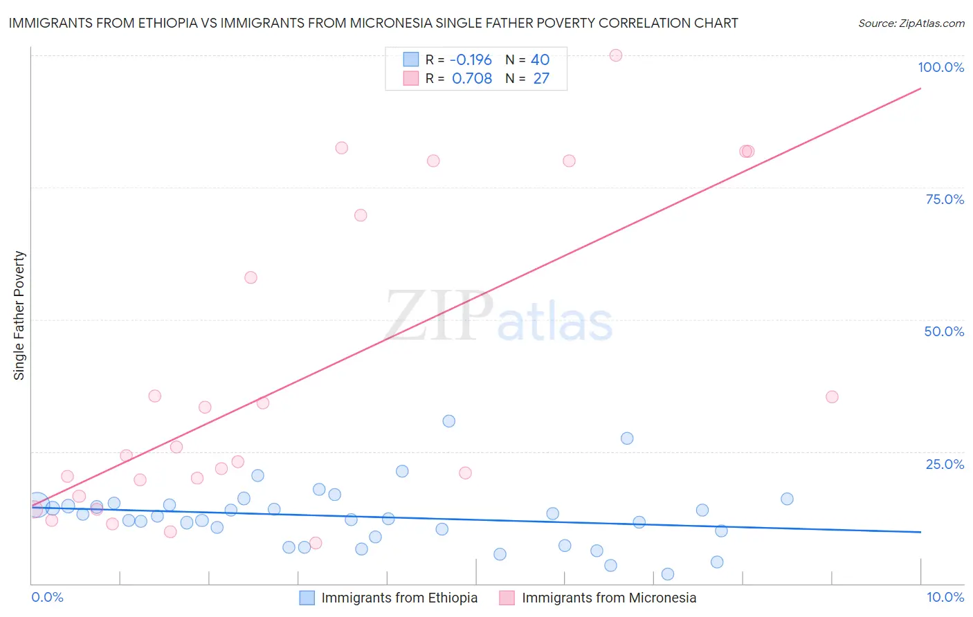 Immigrants from Ethiopia vs Immigrants from Micronesia Single Father Poverty Correlation Chart