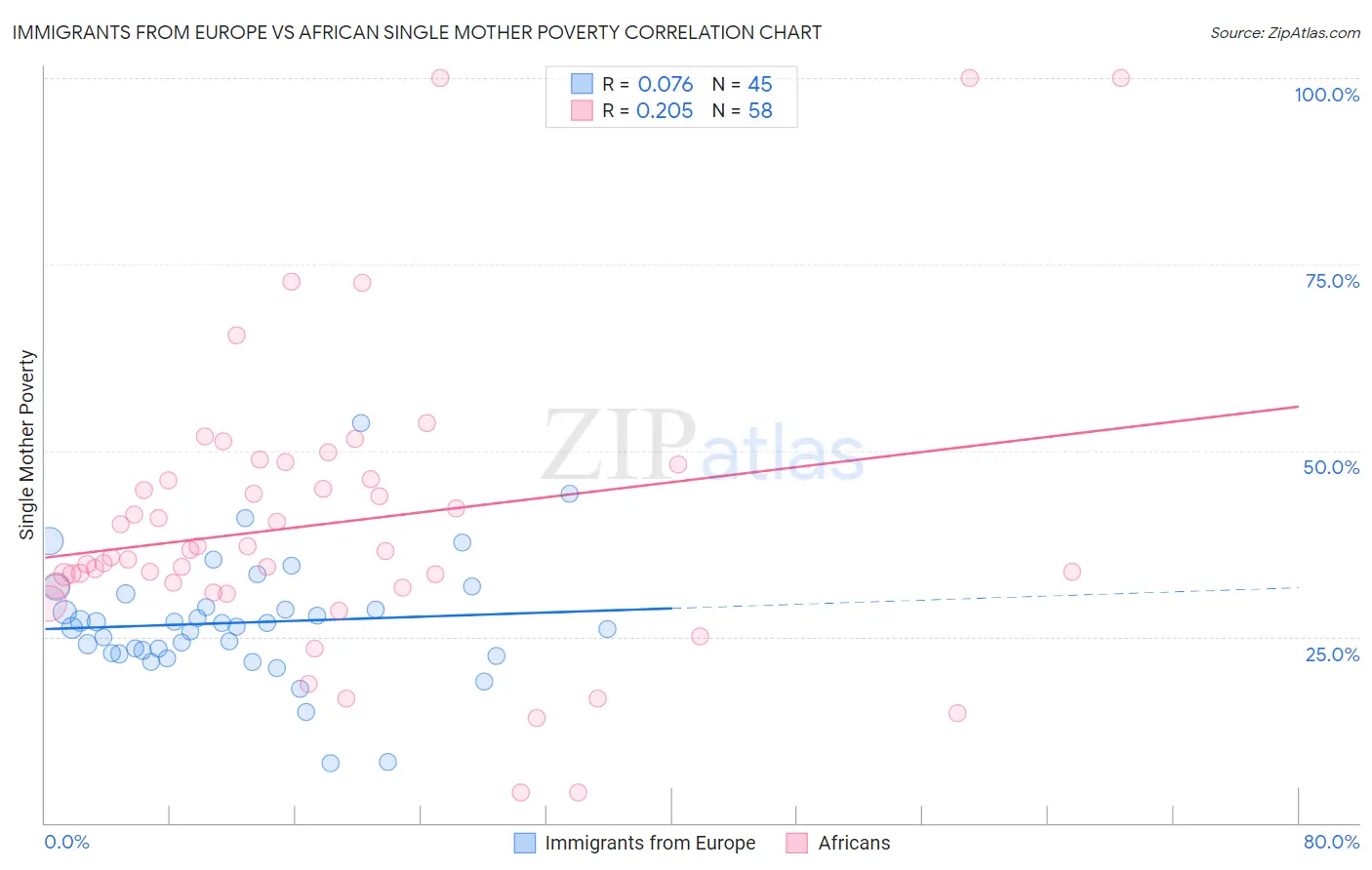Immigrants from Europe vs African Single Mother Poverty Correlation Chart