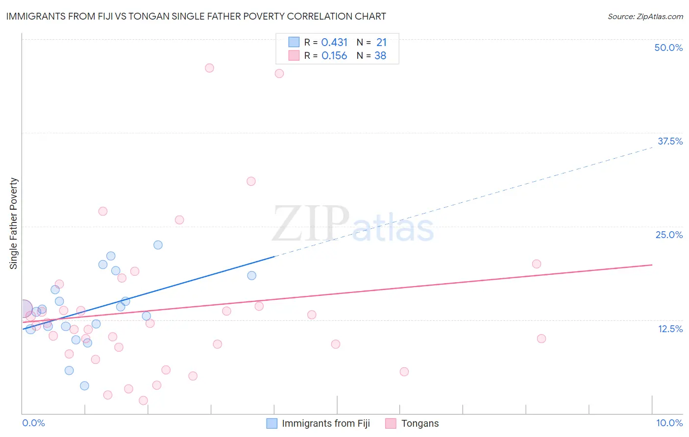 Immigrants from Fiji vs Tongan Single Father Poverty Correlation Chart